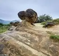 الأصل الجيولوجي: يُعتقد أنها تشكلت بفعل زلازل ضخمة حدثت منذ ملايين السنين في العصر الميوسيني، حيث ضغطت موجات الزلزال الرواسب الرملية والأسمنتية لتكوين هذه الكتل.