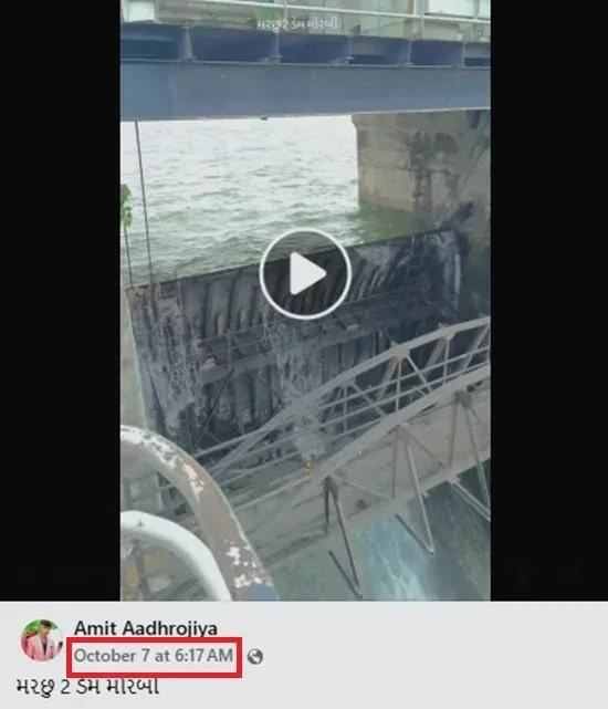 وحمل التعليق المرافق للفيديو إشارة إلى "سد موربي"، عندما دققنا البحث عن السد وجدنا أنه يعني "سد ماتشو 2" على نهر ماتشو المار بمقاطعة موربي في ولاية غوجارات شمالي غرب الهند.